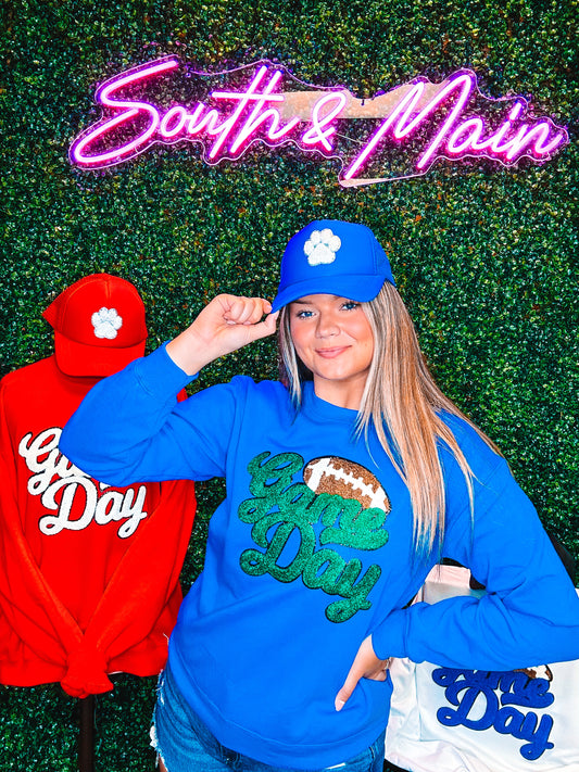 Royal Blue GAME DAY Football Chenille Sweatshirt
