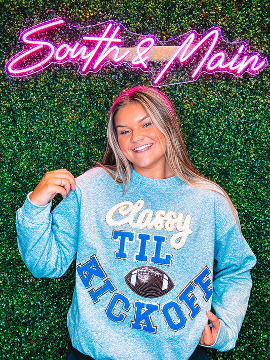 Royal Blue Classy TIL KICKOFF Chenille Sweatshirt