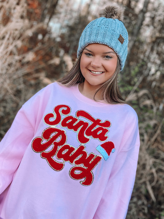 Santa Baby Chenille Sweatshirt (Light Pink)