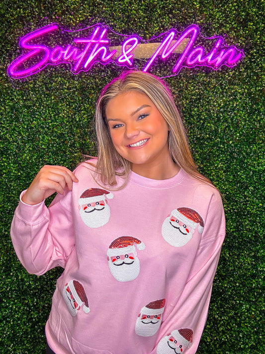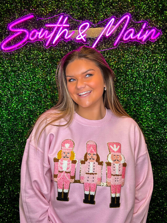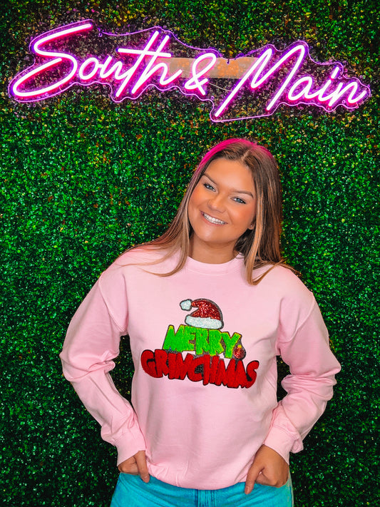 Merry Grinchmas Chenille Sweatshirt - Light Pink