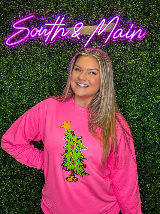 Grinch Tree Chenille Sweatshirt - Bright Pink