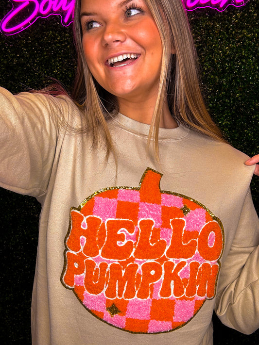 Hello Pumpkin Chenille Sweatshirt - Oat