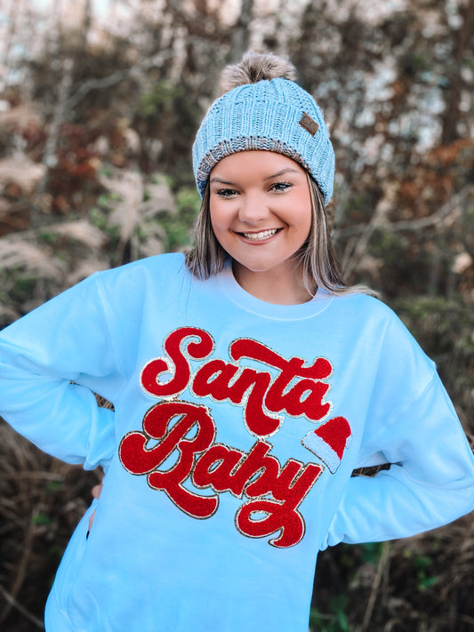 Santa Baby Chenille Sweatshirt (Bright Pink)