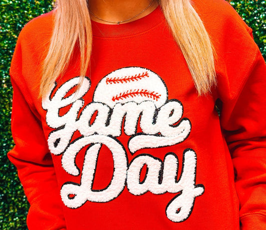 White Game Day Baseball Chenille Sweatshirt