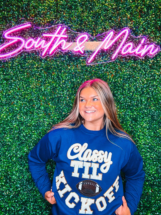 White Classy TIL KICKOFF Chenille Sweatshirt