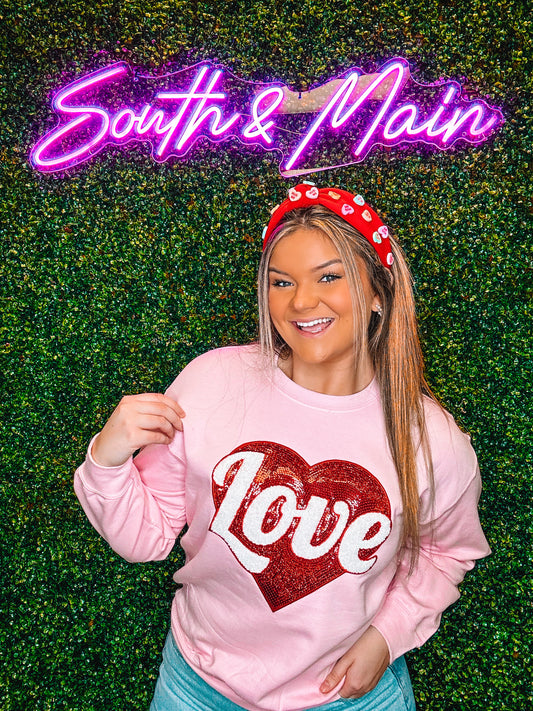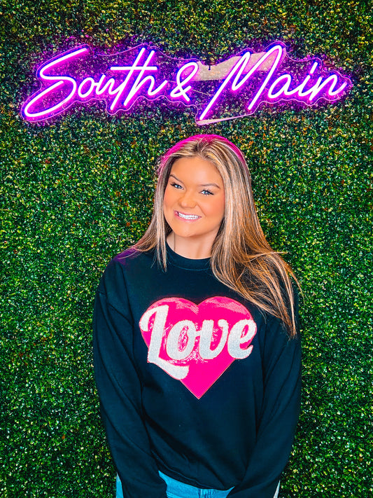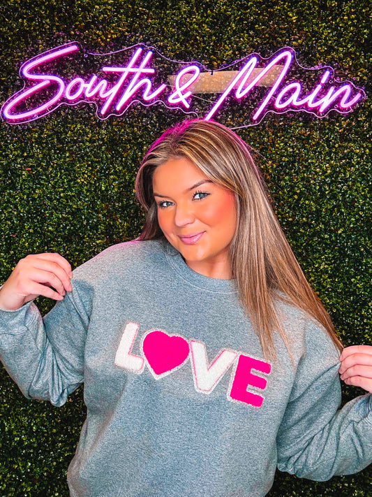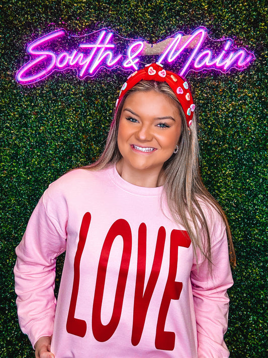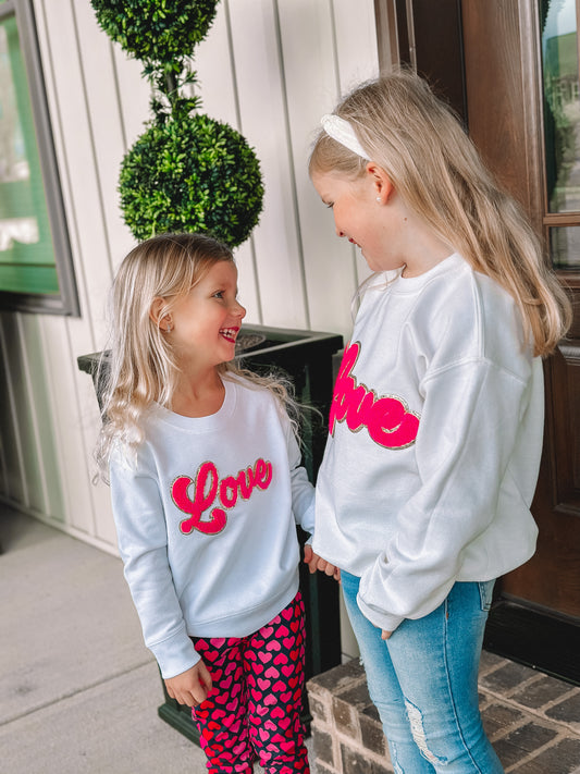 White Sweatshirt w/ Hot Pink LOVE - 2T-Adult 3XL