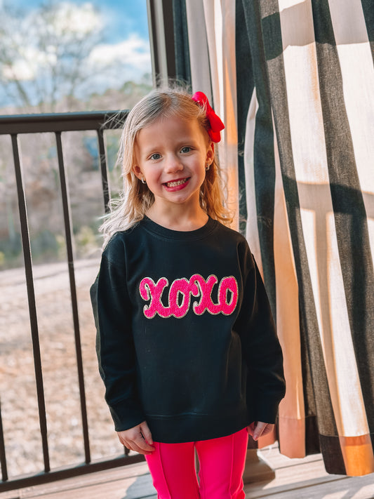Black Sweatshirt w/ Hot Pink XOXO - 2T-Adult 3XL