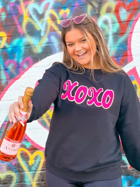 Black Sweatshirt w/ Hot Pink Chenille XOXO