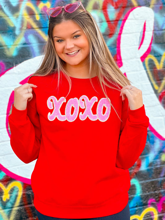Red Sweatshirt w/ Light Pink Chenille XOXO
