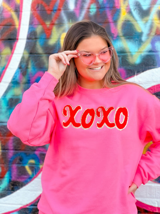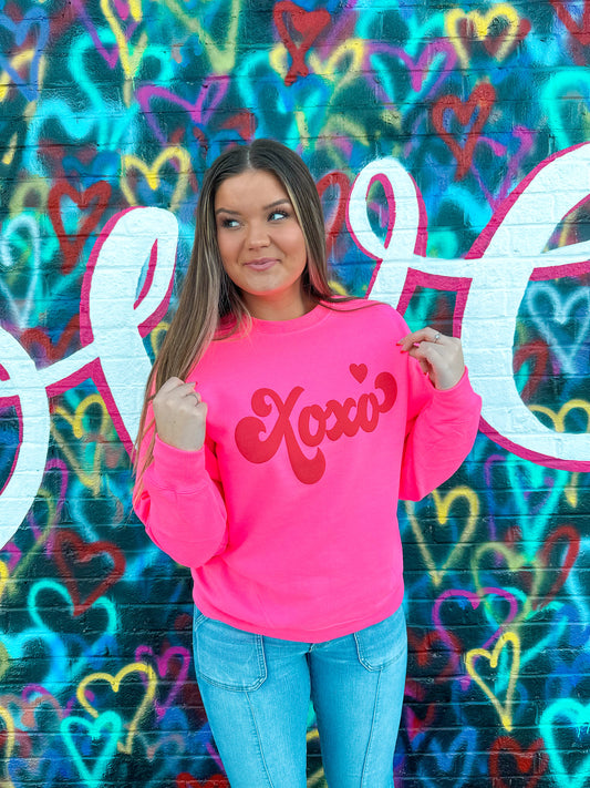 Bright Pink Sweatshirt w/ Red XOXO