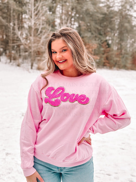 LOVE Hot Pink Chenille Sweatshirt (Light Pink)