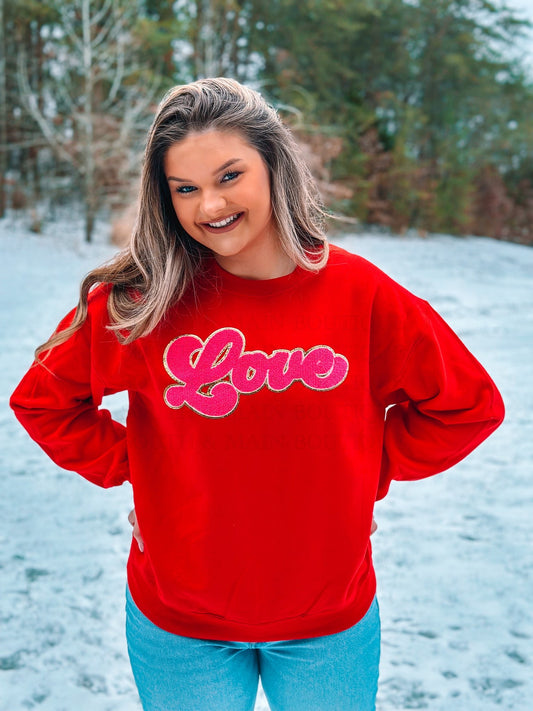 LOVE Hot Pink Chenille Sweatshirt (Red)