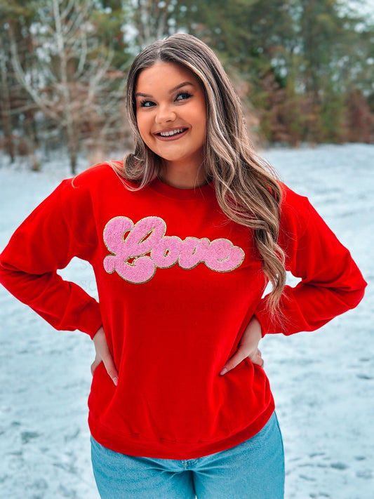 LOVE Light Pink Chenille Sweatshirt (Red)