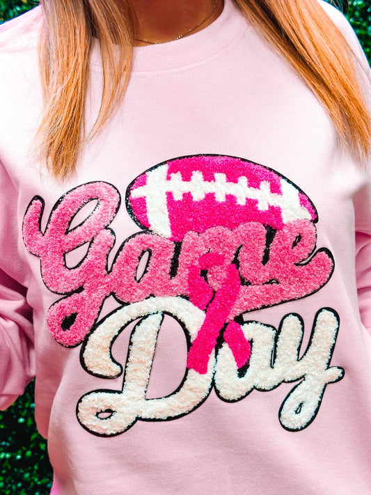 Pink Breast Cancer Awareness Game Day Football Chenille Sweatshirt