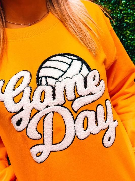 White Game Day Volleyball Chenille Sweatshirt