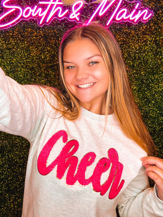 Hot Pink Cheer Script Chenille Sweatshirt