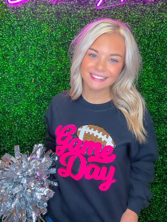 Hot Pink GAME DAY Football Chenille Sweatshirt