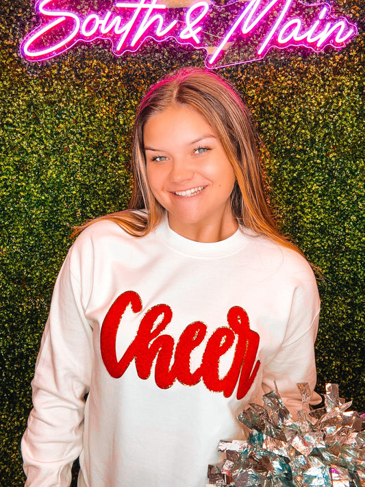 Red Cheer Script Chenille Sweatshirt