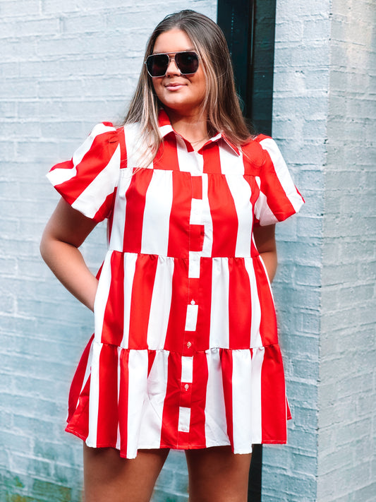 Red + White Striped Dress