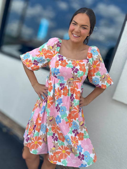 Pastel Floral Squared Dress