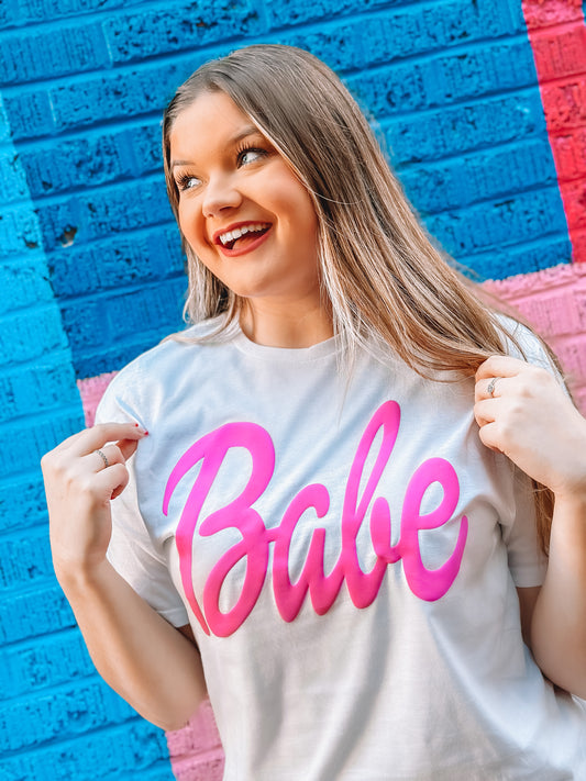 Light Pink V-Neck T-Shirt w/ Light Pink/White MAMA Chenille
