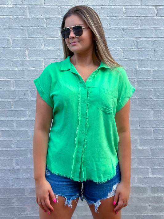 Green Fringe Button Up
