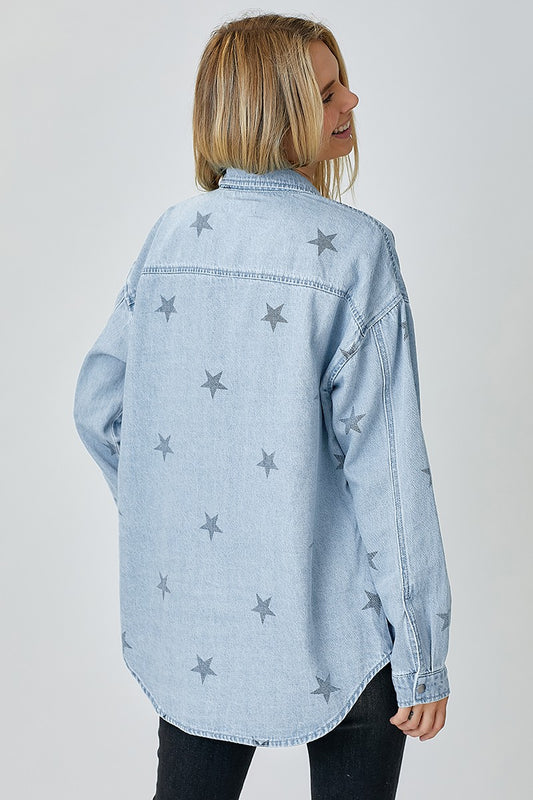 Sold outOversized Star Print Button Down Top