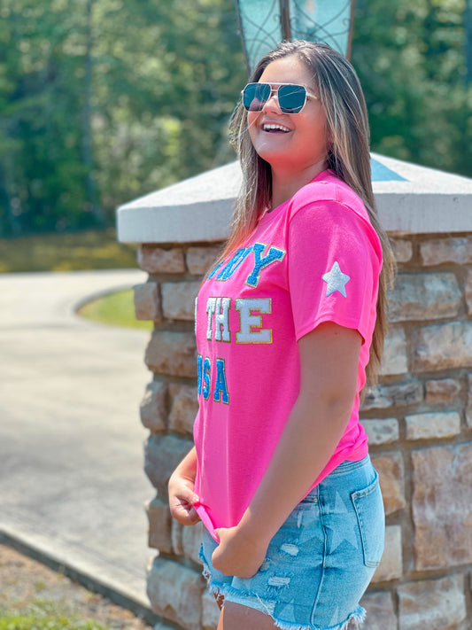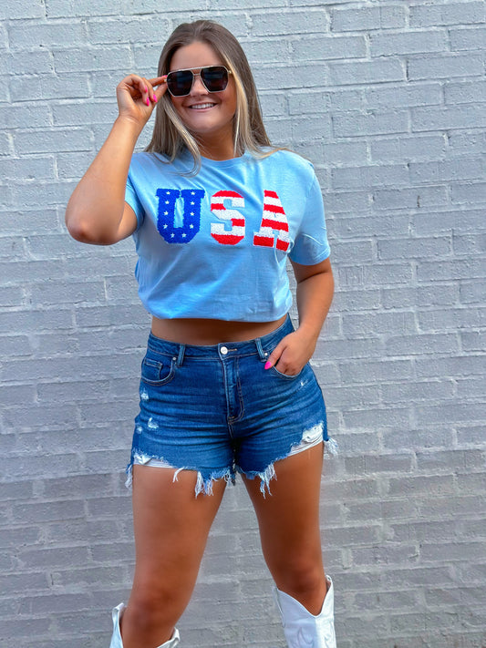 AMERICA YALL Chenille Royal Blue T-Shirt