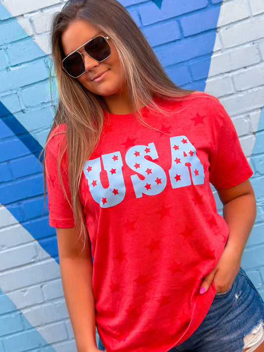 Smiley Face USA Chenille Royal Blue Star T-Shirt